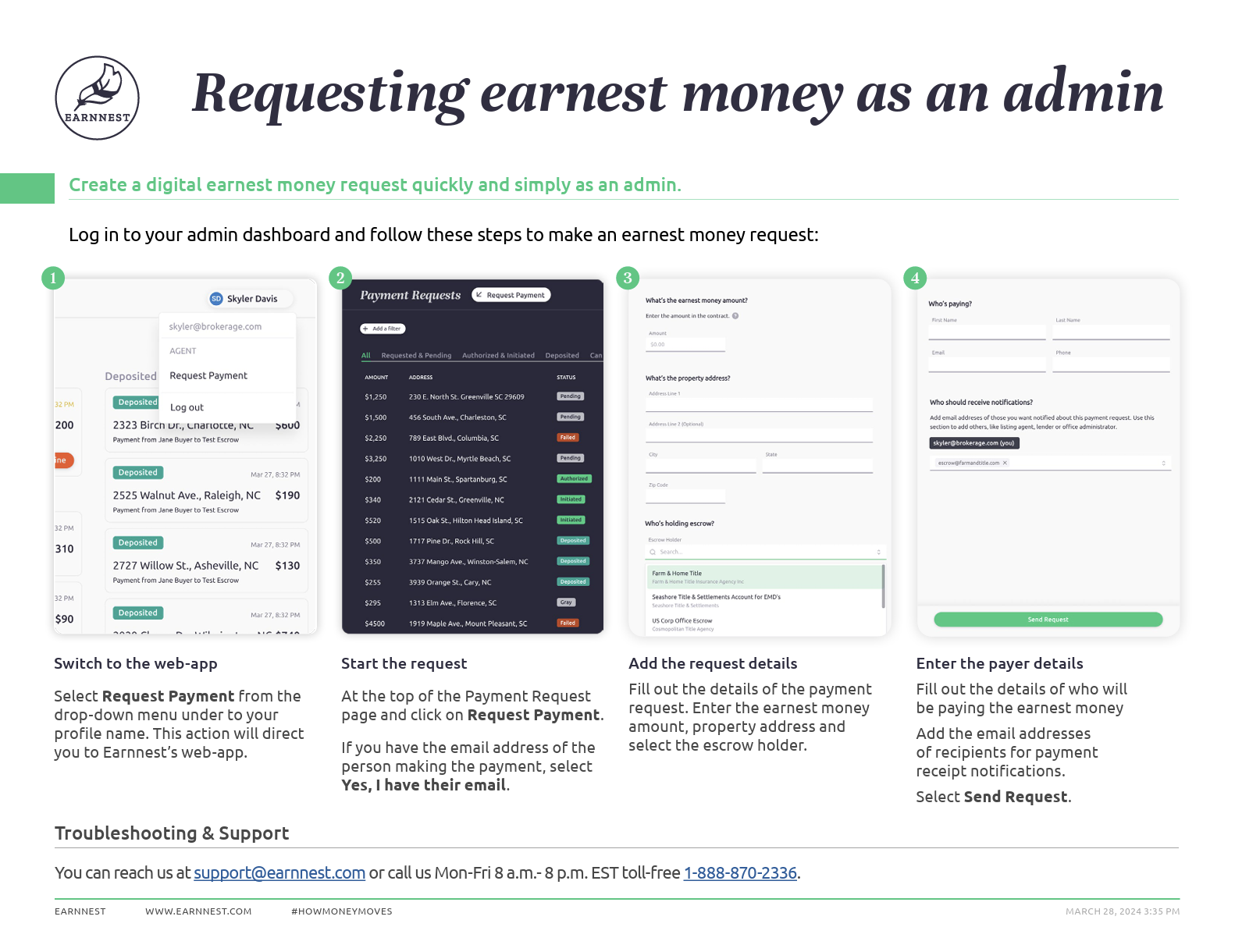 Create a digital earnest money request quickly and simply as an admin. Follow these steps to make a request: